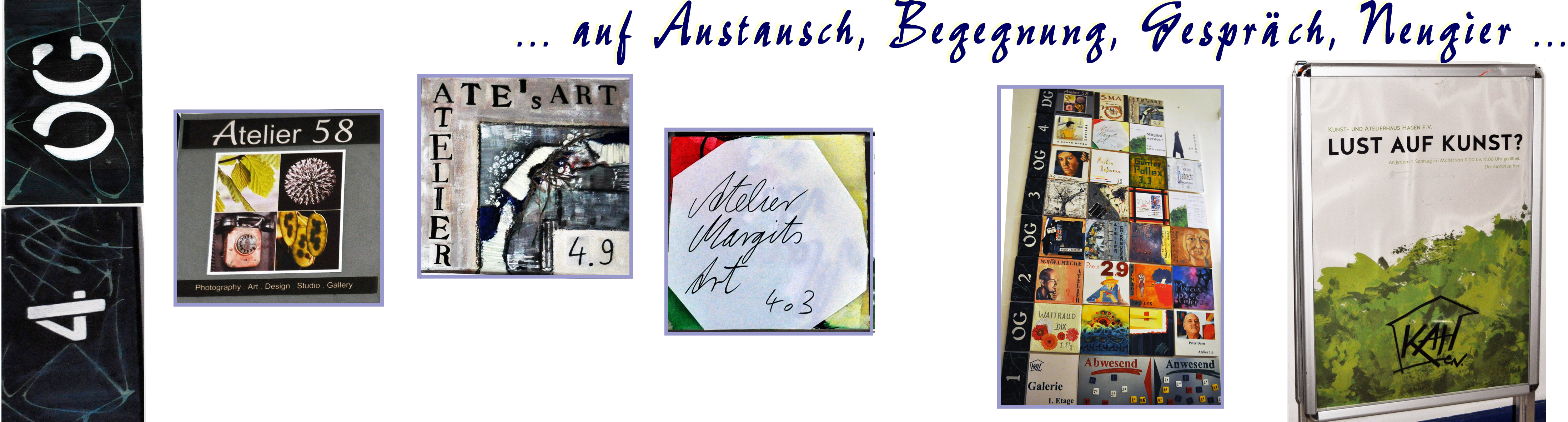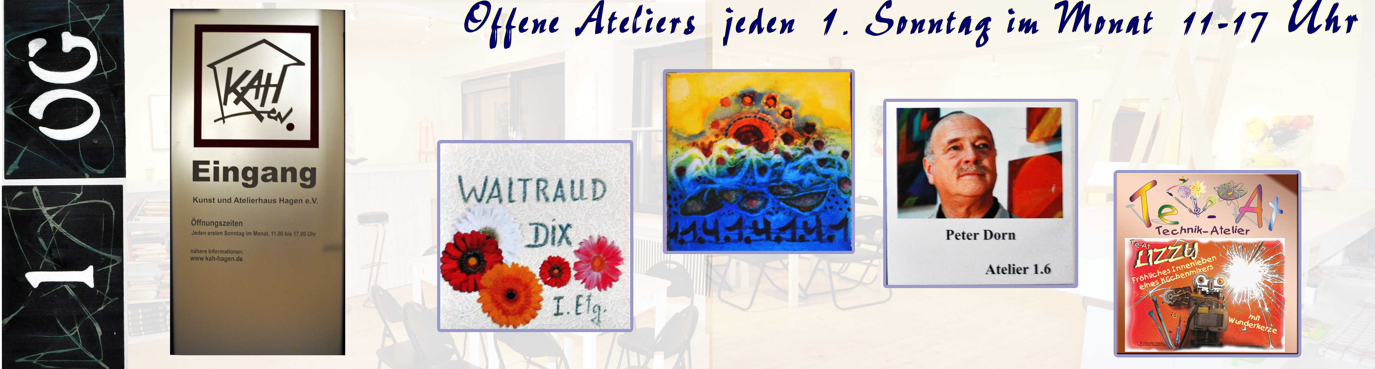 OFFENER SONNTAG An jedem 1. Sonntag im Monat von 11 – 17 Uhr öffnen sich im KAH die Türen der 24 Ateliers auf 4 Etagen für alle, die hier gerne einmal oder immer wieder oder immer öfter herkommen möchten… ..